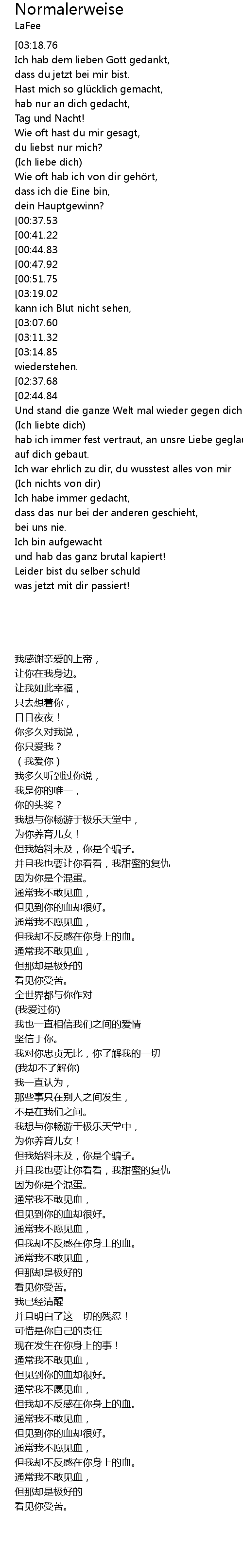 | [03:26.08][03:11.32][02:23.27][01:02.06] | Normalerweise will ich Blut nicht sehen |