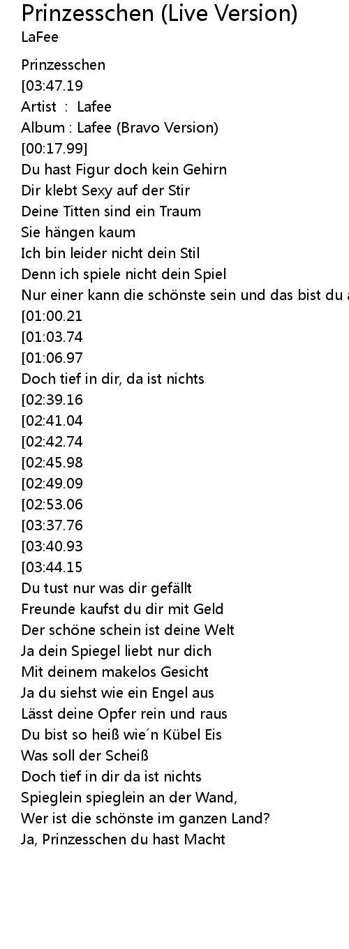 | [03:34.23][02:53.06][01:27.24] | Ja Prinzesschen du hast Macht |