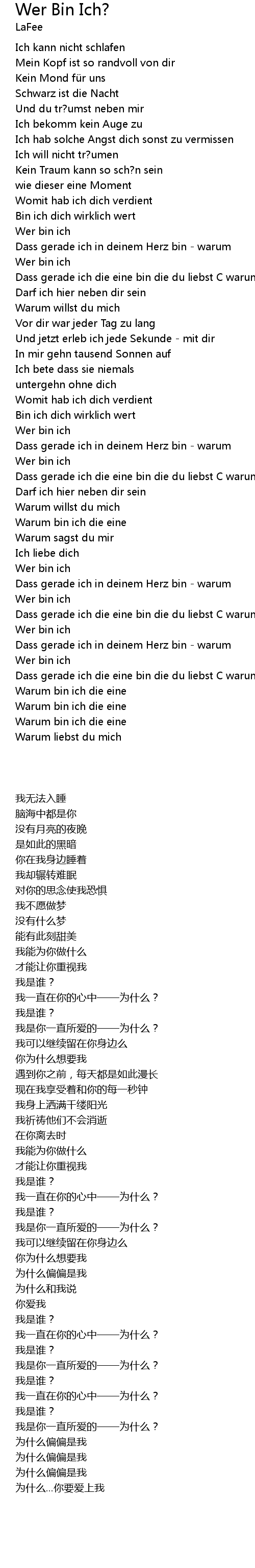 | [03:20.60] | Dass gerade ich in deinem Herz bin - warum |