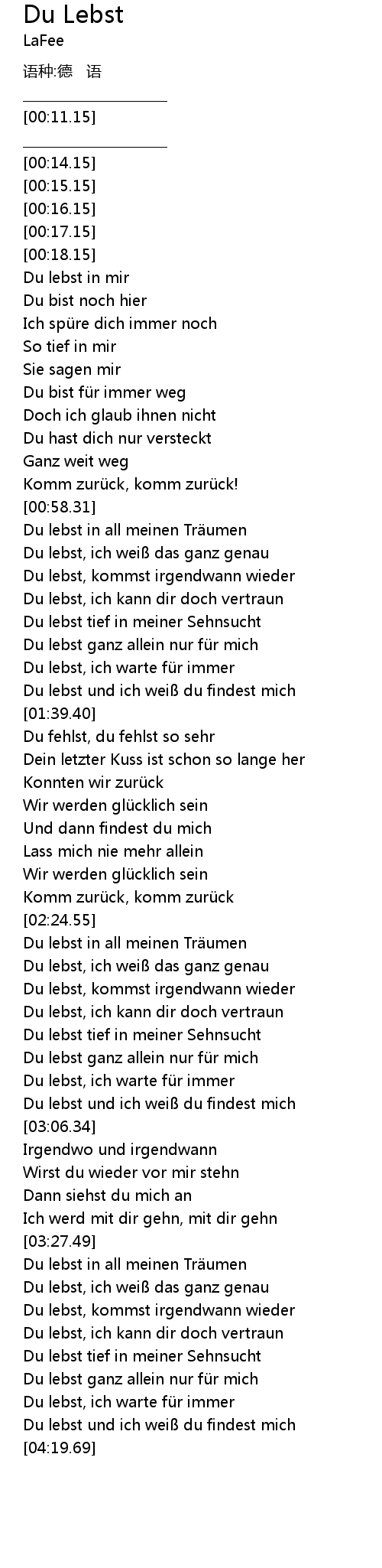 | [04:11.94] | Du lebst und ich wei du findest mich |