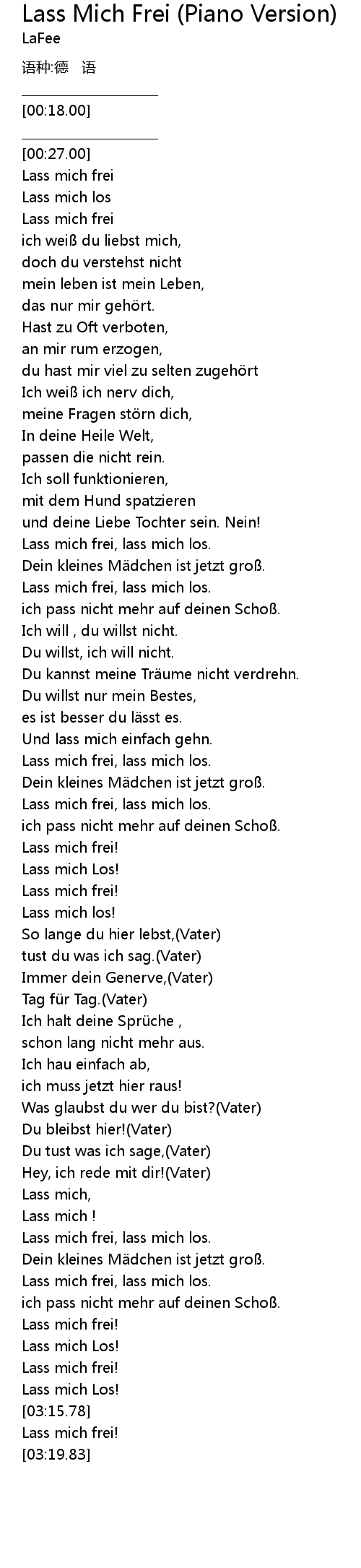 | [01:56.84] | Lass mich frei, lass mich los. |