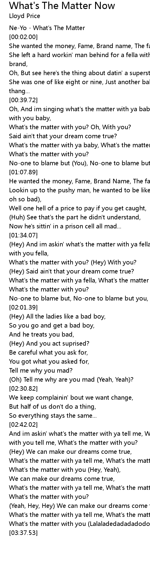 [02:43.34] And im askin' what's the matter with ya tell me, What's the matter with you tell me, What's the matter with you?
