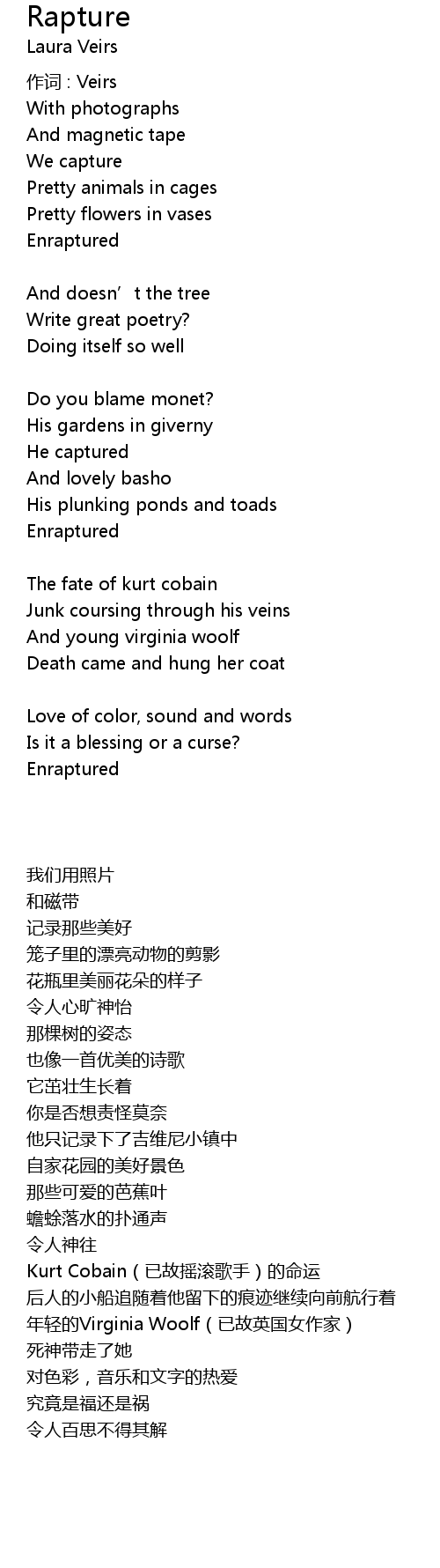 | 作词 : Veirs | |