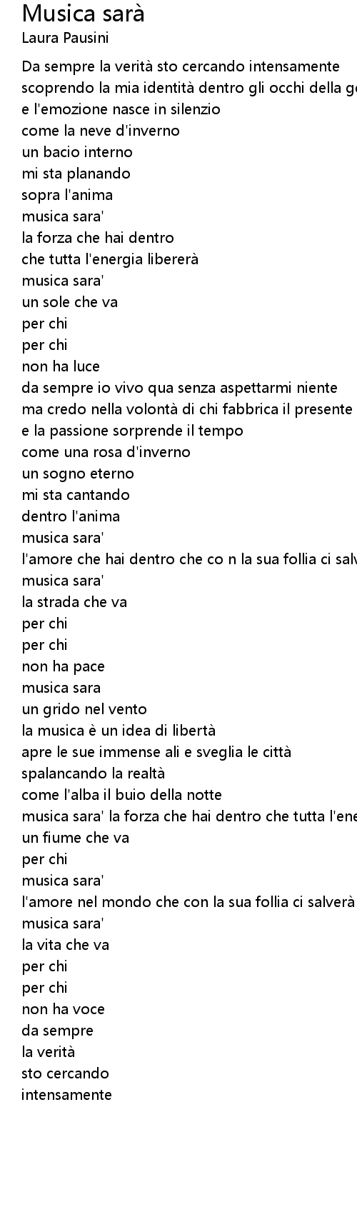| musica sara' la forza che hai dentro che tutta l' energia libererà musica sara' | |