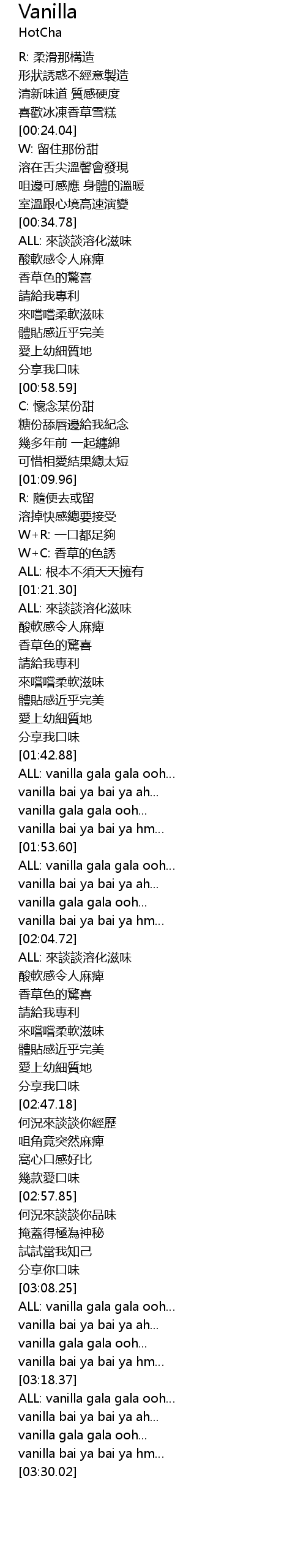 | [03:19.63] | ALL: vanilla gala gala ooh |
