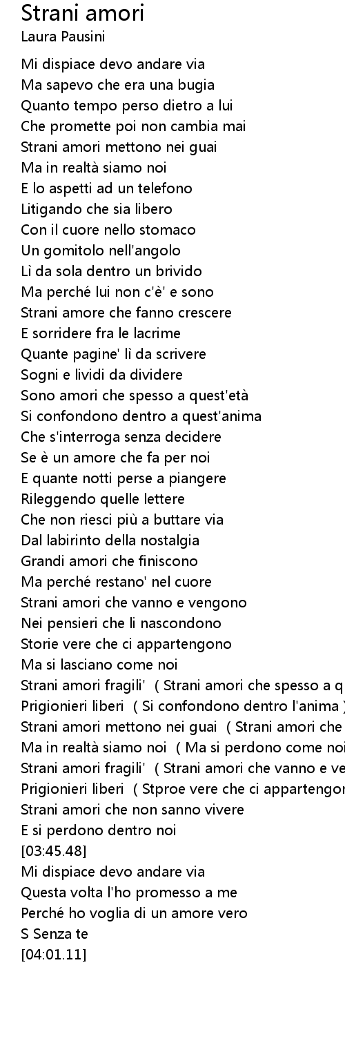 | [03:18.17] | Strani amori fragili' (Strani amori che vanno e vengono) |