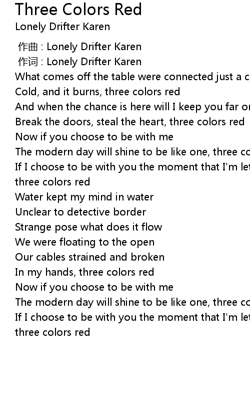 | [00:01.00] | 作词 : Lonely Drifter Karen |