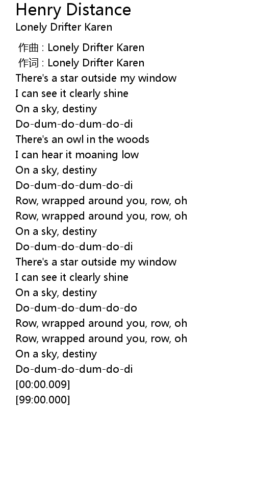 | [00:00.03] | 作词 : Lonely Drifter Karen |