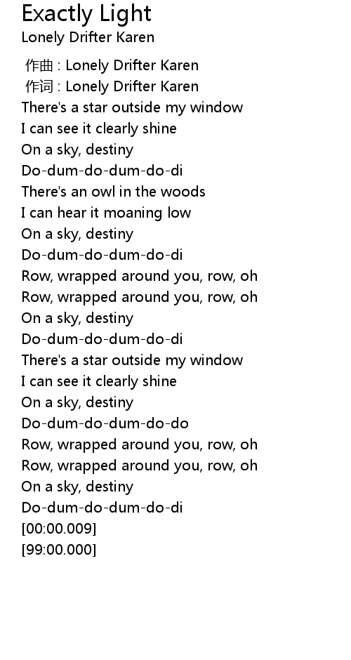 | [00:00.03] | 作词 : Lonely Drifter Karen |