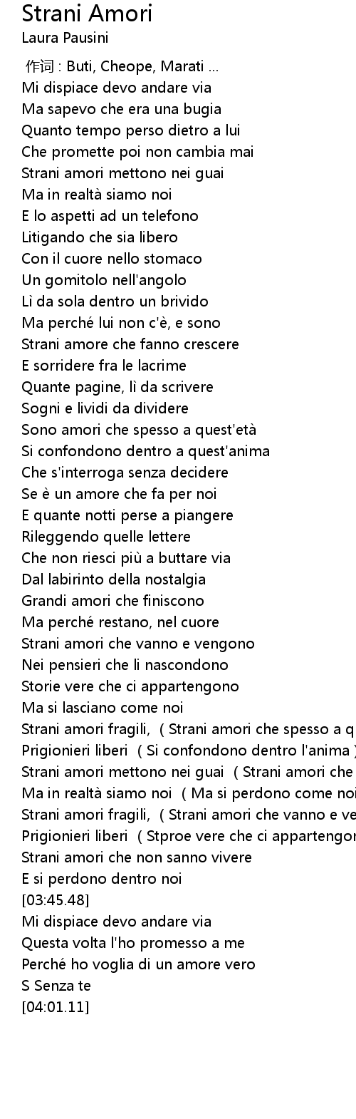 | [03:18.17] | Strani amori fragili, Strani amori che vanno e vengono |