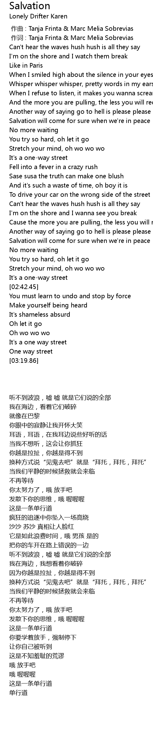 | [00:58.85] | Salvation will come for sure when we' re in peace |
