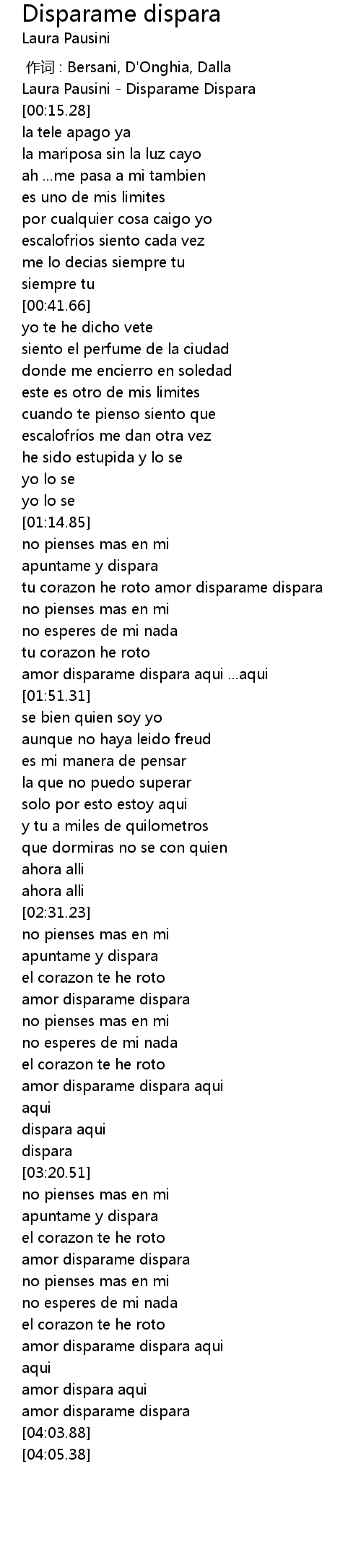 | [00:00.00] | Laura Pausini Disparame Dispara |