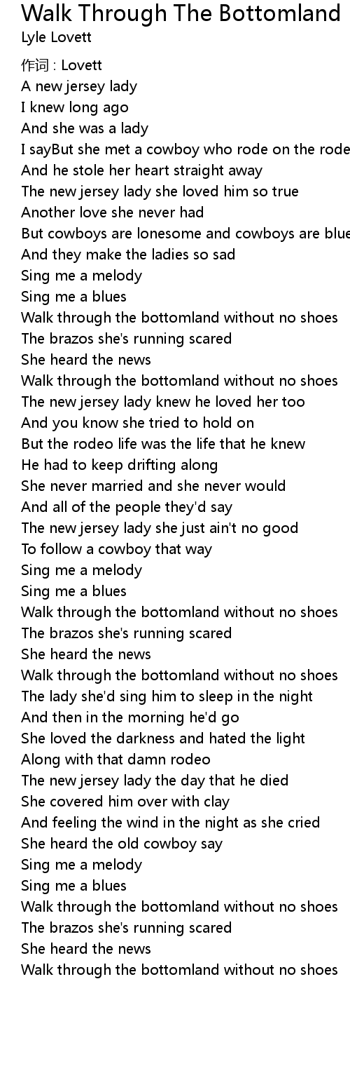 | Song | Walk Through The Bottomland |