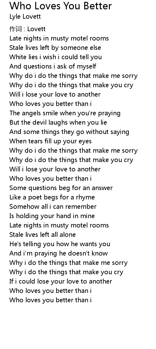 | Song | Who Loves You Better |