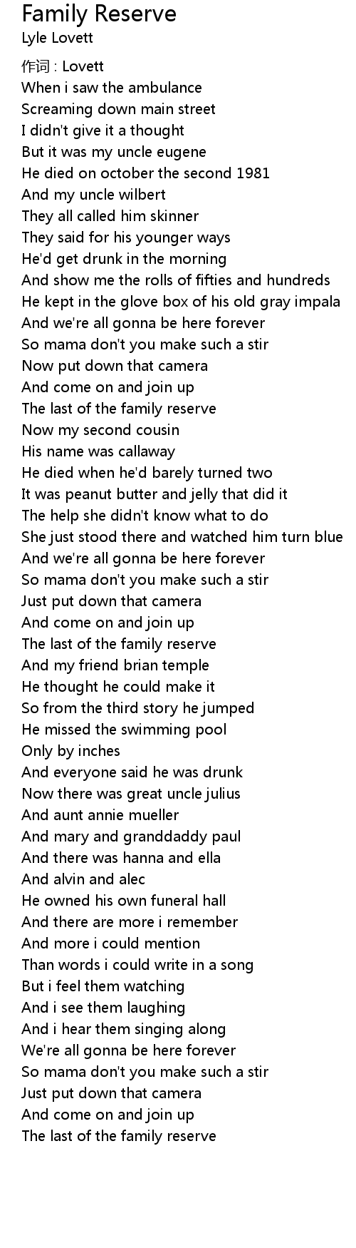 | Song | Family Reserve |