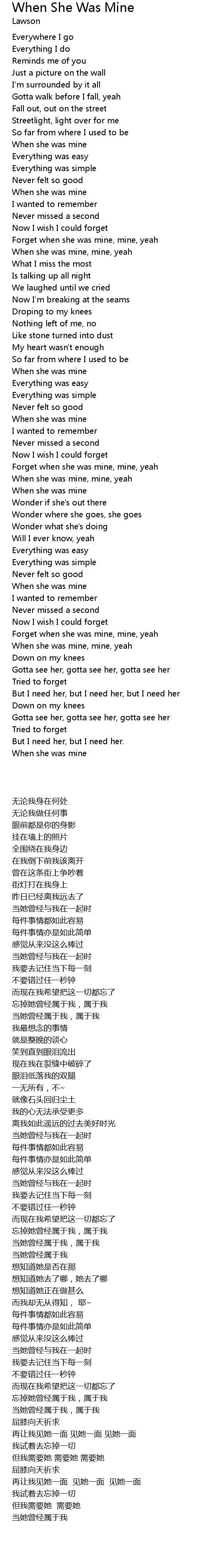 When She Was Mine Lyrics