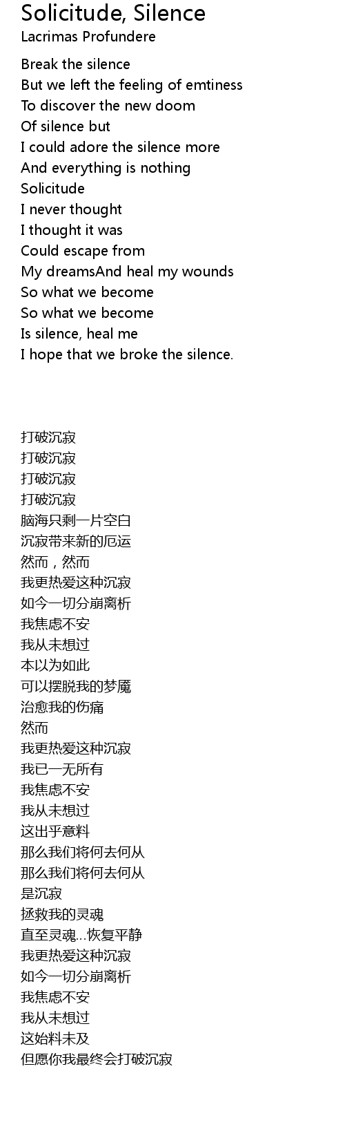 | Song | Solicitude, Silence |
