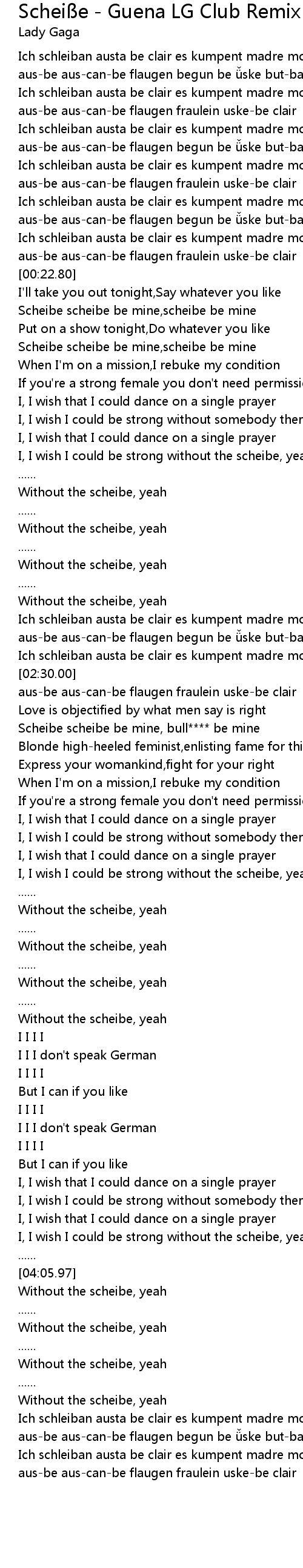 | [02:41.61] | Scheibe scheibe be mine, bull**** be mine |