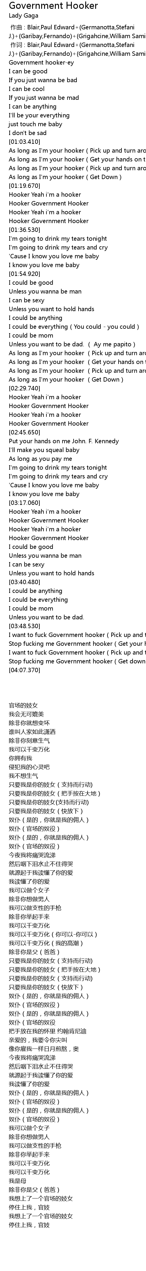 | [01:09.260] | As long as I' m your hooker Get your hands on the ground |