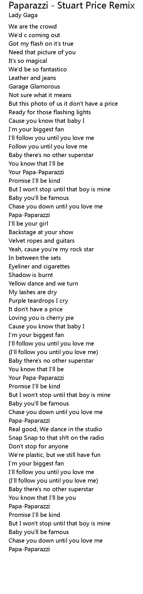 | [01:06.36] | Papa-Paparazzi |