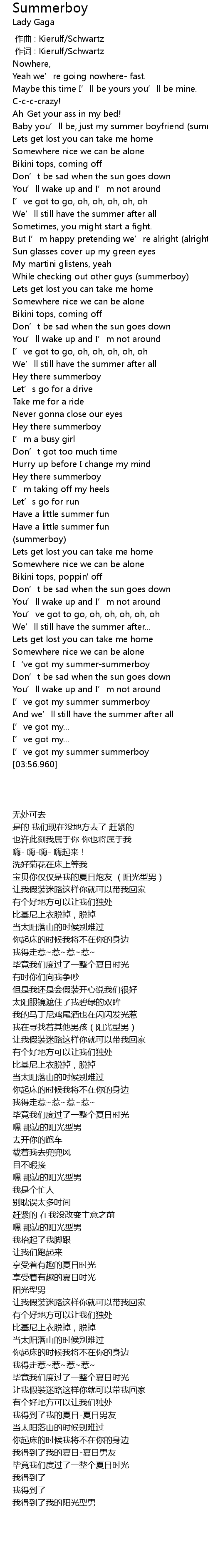 | [03:28.230] | I' ve got my summersummerboy |