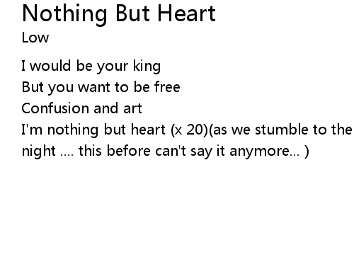 I'm nothing but heart (x 20)(as we stumble to the shore... as we walk into the night .... this before can't say it anymore... )
