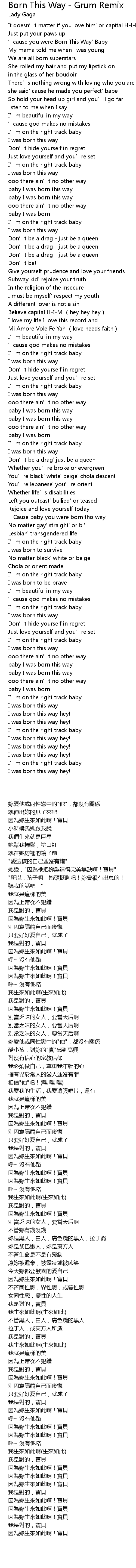 | [00:40.690] | ' cause you were Born This Way' Baby |