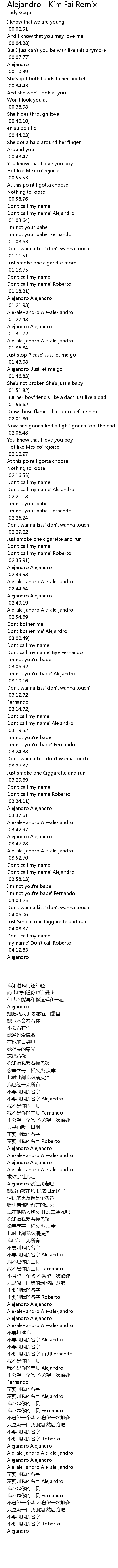| [02:52.51] | Ale-ale-jandro Ale-ale-jandro |