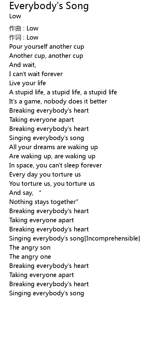 | Singing everybody' s song Incomprehensible | |
