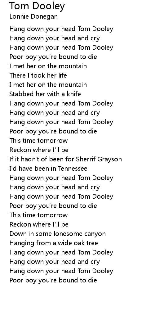 Hang down your head Tom Dooley |