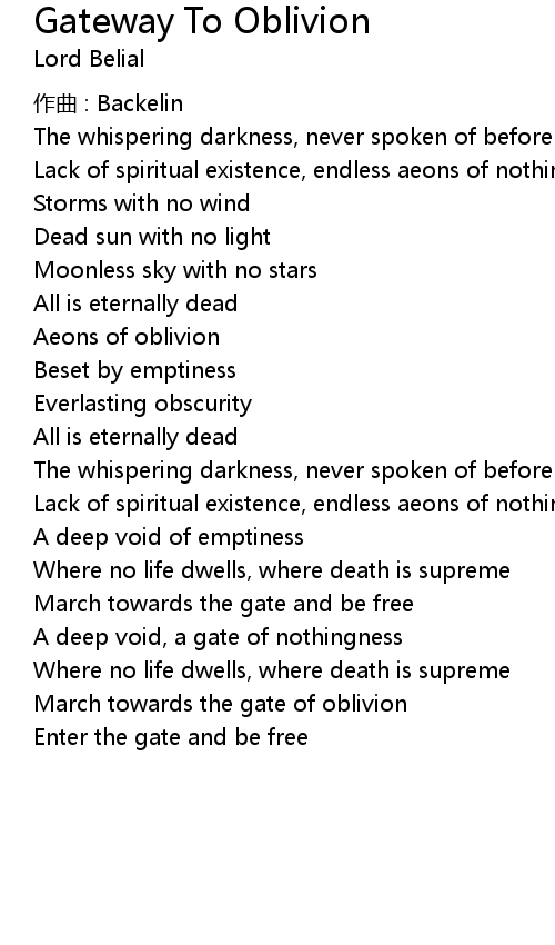 | Song | Gateway To Oblivion |