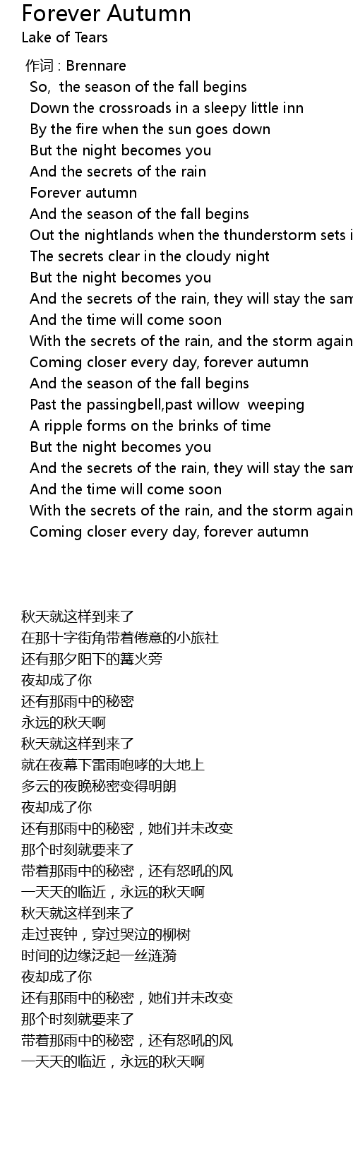| [02:39.100] | Coming closer every day, forever autumn |