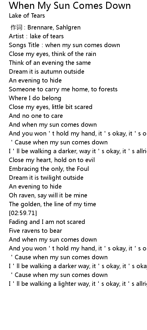 | [03:34.73] | I ll be walking a darker way, it s okay, it s okay |