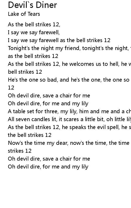 As the bell strikes 12, he welcomes us to hell, he welcomes us to hell as the bell strikes 12 |