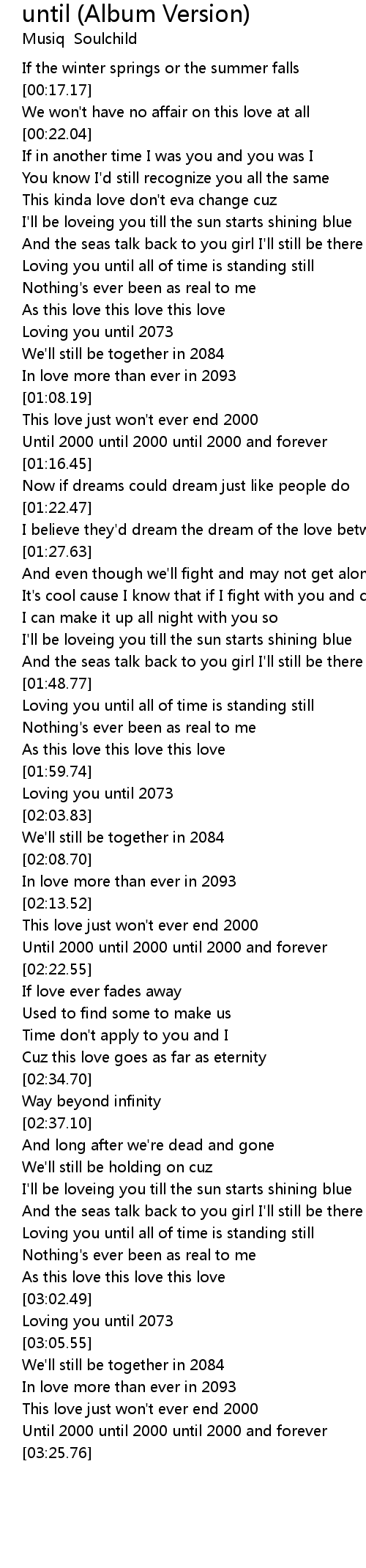 Until 2000 until 2000 until 2000 and forever |