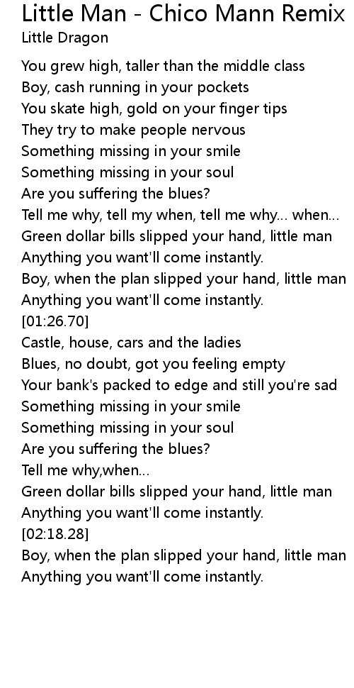 | [01:11.43] | Green dollar bills slipped your hand, little man |