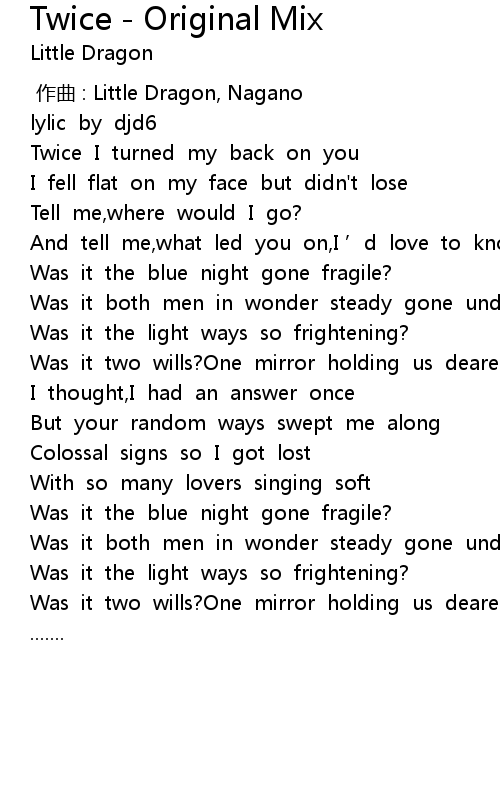 | [00:00.00] | 作曲 : Little Dragon, Nagano |