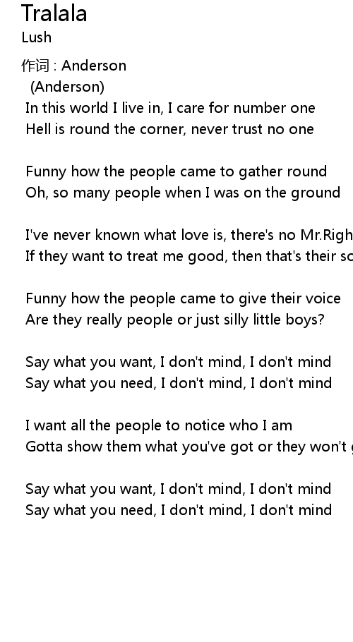 | Say what you need, I don' t mind, I don' t mind | |