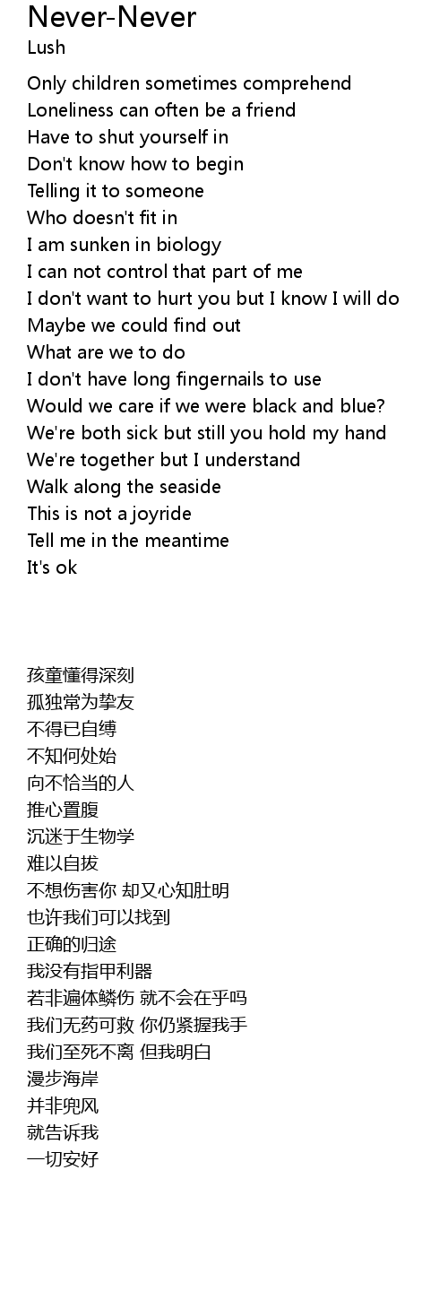 | [03:20.71] | We're both sick but still you hold my hand |