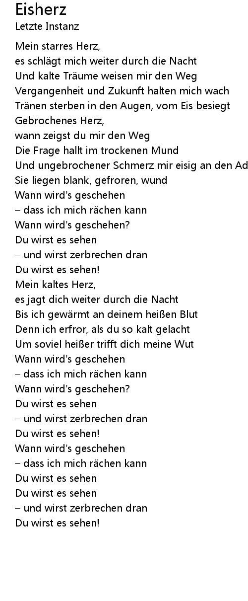 | Und ungebrochener Schmerz mir eisig an den Adern s gt | |