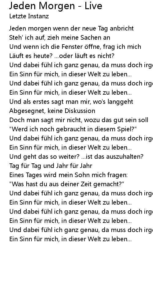 | Song | Jeden Morgen - Live |