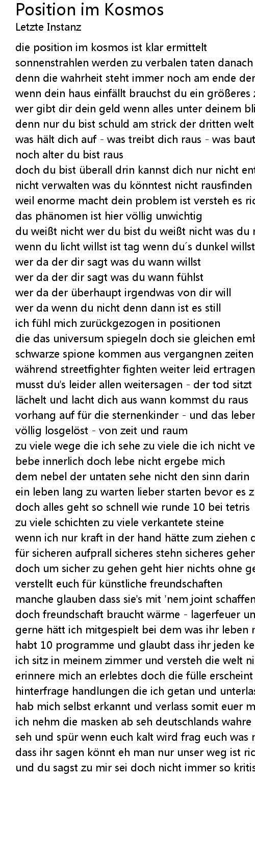 | Song | Position im Kosmos |