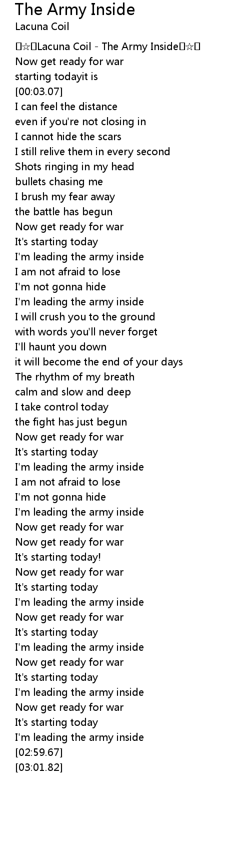 | [00:00.77] | �☆�Lacuna Coil - The Army Inside�☆� |