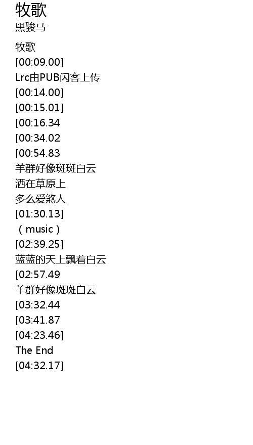 | [01:47.95][00:34.02] | 白云的下面洁白的羊群 |