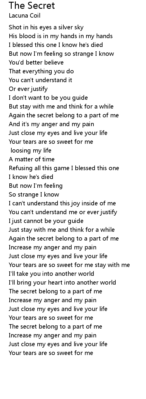 Again the secret belong to a part of me |
