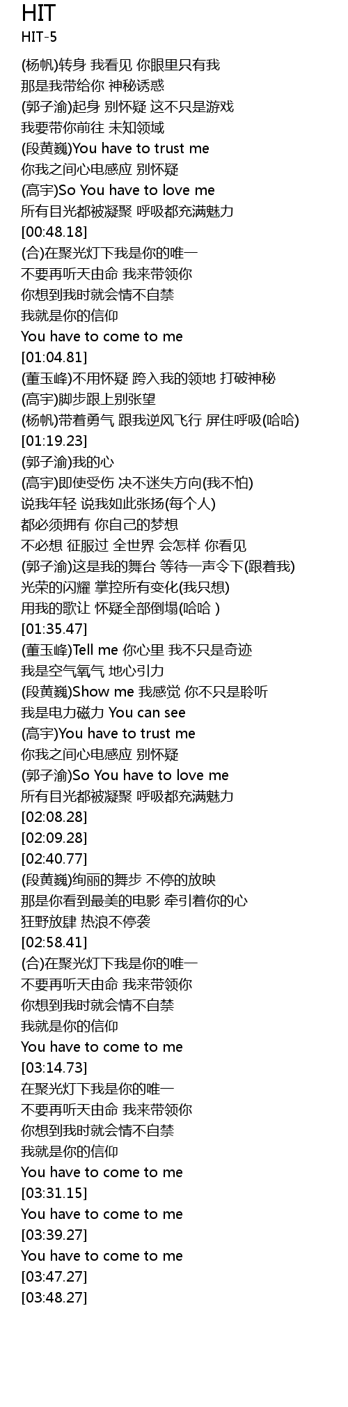 | [01:44.33] | (段黄巍)Show me 我感觉 你不只是聆听 |