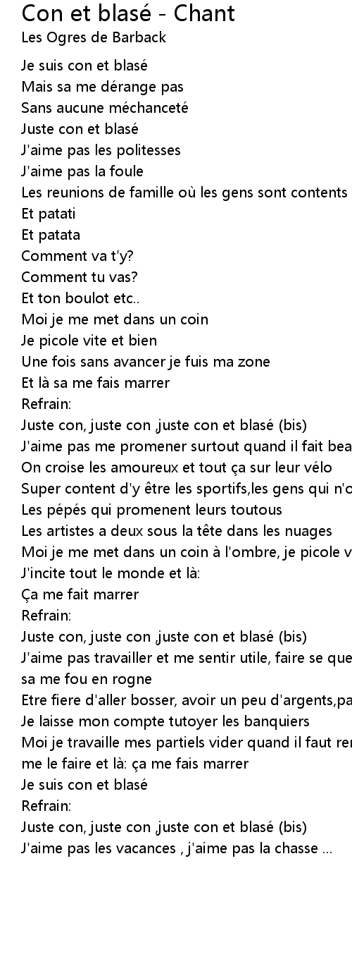 | Juste con, juste con ,juste con et blasé (bis) | |