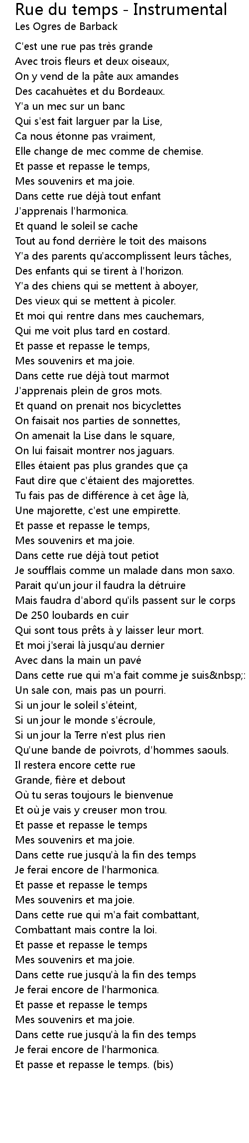 | Song | Rue du temps - Instrumental |
