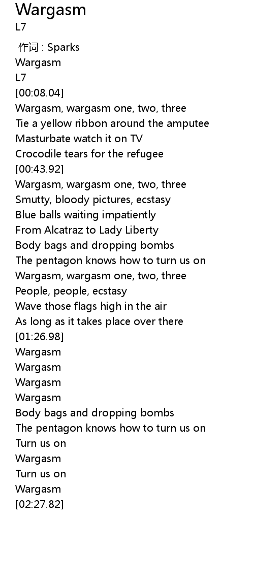| [00:56.92] | Wargasm, wargasm one, two, three |