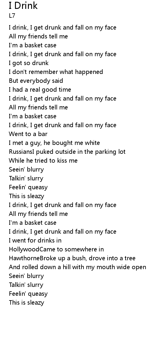 | I drink, I get drunk and fall on my face | |